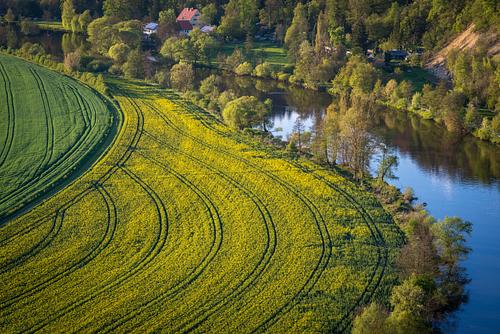 Interessante Location hoch über dem Naabtal. Abseilen zum Einstieg.