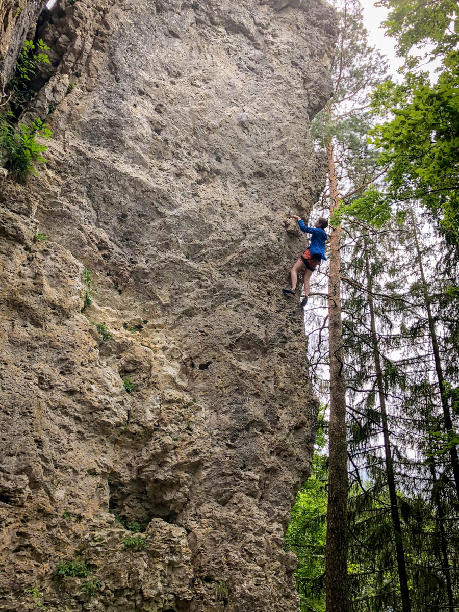 Ruhiger, schöner Fels mit durchweg guten Routen in fränkischem Qualitätsfels. Die Wege sind alle gut bis sehr gut gesichert.
