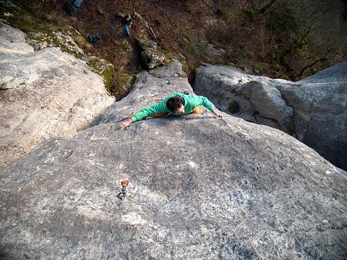 Der erste Haken ist zwar auf einer ordentlichen Höhe, bis dahin kann man aber auch gut mobiles Gerät (Friend und/oder Köpfelschlinge) unterbringen. Überraschend guter Fels mit spannendem Finale! Gar nicht so einfach, da überhaupt Mal rauf zu kommen ;-) Die Tour hat einen zusätzlichen 1. Haken bekommen - autorisiert vom Erstbegeher. Auch wurde die Linie gebühlert. Die Longlife-Haken kommen bei Gelegenheit noch raus.