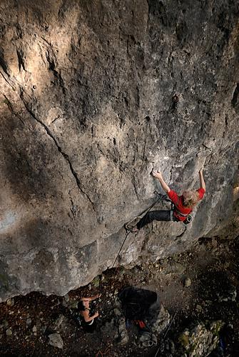 n Tick leichter als Covergirl, wenn auch nicht unbedingt angenehmer zu klettern. Kurz vorm Umlenker links außen, da wackelt ein Teil des Ausstiegsblocks. Man sieht schon vom Boden aus, dass es diesen zu meiden gilt. -