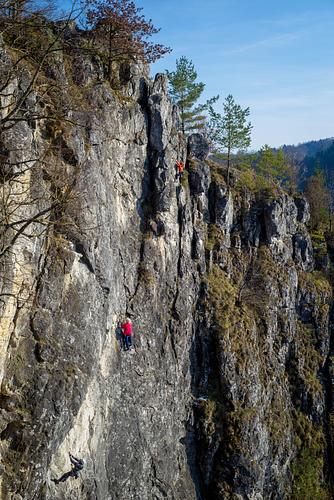 Ab durch die Mitte. Prima Route. Wer nicht umlenken mag kann auch aussteigen und die Abendsonne beim nachsichern genießen. Absicherung:sehr gut / wie Kletterhalle