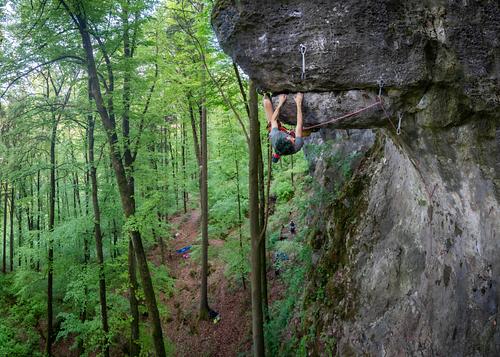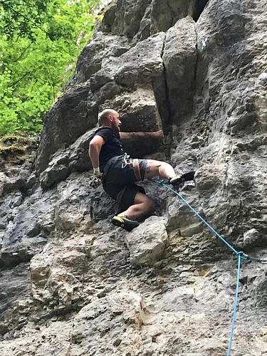 Wer Adrenalinallergie hat, steckt noch nen ,5 oder ,75er BD auf dem Weg zum vierten Haken. Pornöses Gestein oben. Hat der Direktausstieg hierzu, über das Dach schon einen Namen? Und steigt man das hier ein oder über den Dirtbag Einstieg? Man steigt über Dirtbag ein und zweigt an dem markanten Startgriff oben nach links ab. Ah Danke dir!! Das macht rückblickend auch mehr Sinn, dann nimmt man den schweren Teil auf logischer Linie mit! Für eine so kurze Nacherschließung übrigens ganz lohnende Tour! Auch wenn sie nicht mit den anderen Touren hier in dem Gradbereich mithalten kann ;) -