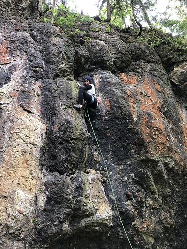 1. Haken vorklippen oder mit Crashpad einsteigen;-) Kräftiger Einstieg, tricky Mittelteil und gemütliches Ende Absicherung:sehr gut / wie Kletterhalle
