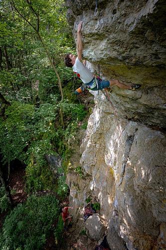 Richtig schöne Tour durchs Dach der Gleisl in der man seinen rohen Kräften freien Lauf lassen kann. Der Runout zum Schluss gibt dann nochmal den nötigen Motivationsschub das Ding durchzusteigen. Sehr lohnende Tour für diejenigen die ihren inneren Boulderer mal wieder zum Vorschein bringen möchten. TipTop. Super Tour. Perfekt gebohrt. An großen Henkeln durchs Dach. Auch mit nassen Henkeln hat es heute funktioniert. Bei der Bewertung wird die Route wohl ein Türöffner für den Grad 7b sein. Nimmt sich nichts mit der Gleislsinfonie. Super Tour. Hat echt Spaß gemacht. Für 8+/9- fand ich es schon etwas zu leicht. Man hat immer gute Griffe in der Hand Um das Umlenken zu erleichtern habe ich am Top einen Trilock spendiert. Ich finde es eine unglaubliche Frechheit, dass es Leute gibt, die so etwas derartig ausnutzen und dieses gespendete Material aus der Wand klauen! Möge sich der Langfinger angesprochen fühlen und das Material bitte wieder zurückbringen! Wenn das Material ständig aus der Wand geklaut wird gibt es halt zukünftig keine beschleunigten Umbaumöglichkeiten mehr. Crux finde ich ist das Klippen des 5.Hakens und da sollte man keinesfalls fallen. Also finde der bohrhaken drunter könnte höher oder der oben tiefer sein. Ist nicht schön da aufs Band zu knallen, aber durchaus möglich, dass ich mich beim Klippen einfach saudumm anstelle :) Hallo Hannse, also zum Klippen ist es im Normalfall kein Problem, weil man da wirklich einen guten Griff in der Hand hat und mit den Füßen steht man auch recht gut. Zur Hakensetzung ist zu sagen, dass das nicht immer so einfach ist, weil der Fels eben auch kompakt genug sein muss. Ich habe mir auch sehr viel Gedanken über die Hakenpositionen gemacht und finde diese auch sehr gut gelungen. Außerdem muss man sagen, das bei Klippstürzen in extrem vielen Touren potentiell gefährliche Stürze möglich sind...das lässt sich einfach nicht immer vermeiden beim einbohren ;) Bin da voll eurer Meinung deswegen auch die Einschränkung, dass ich mich womöglich saudumm anstelle. Sollte nicht als Kitik verstanden werden sondern nur als Info. Finde es mega, dass man sich die Mühe macht Neutouren zu erschließen und in so einem steilen Gelände draussen eine 8+ zu bekommen is sehr cool. Schöne Resterschließung, vielen Dank für die Arbeit. Mehr als 8 springt da aber nicht raus, sind ja nur gute Griffe. Jetzt sind die Griffe nicht mehr so gut :-) vor allem nach dem Ausbruch genau bei dem großen Loch. Jetzt weiß ich gar nicht mehr wie ich den 5. klippen soll :-( Der Klipp ist seit dem Ausbruch sicher nicht leichter geworden. Als ich die Tour vor kurzem wiederholt habe, bin ich (wschl wie du auch) mit links in das große Loch im Dach gezogen, hab dann die Beine nachgeholt und hab mit der rechten Hand sozusagen überkreuz geklippt. Ich hoffe damit konnte ich dir etwas weiterhelfen. -