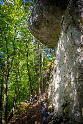 Die Schuppe unten ist nicht als Turngerät gedacht und verträgt auch keine Klemmkeile. Absicherung:sehr gut / wie Kletterhalle