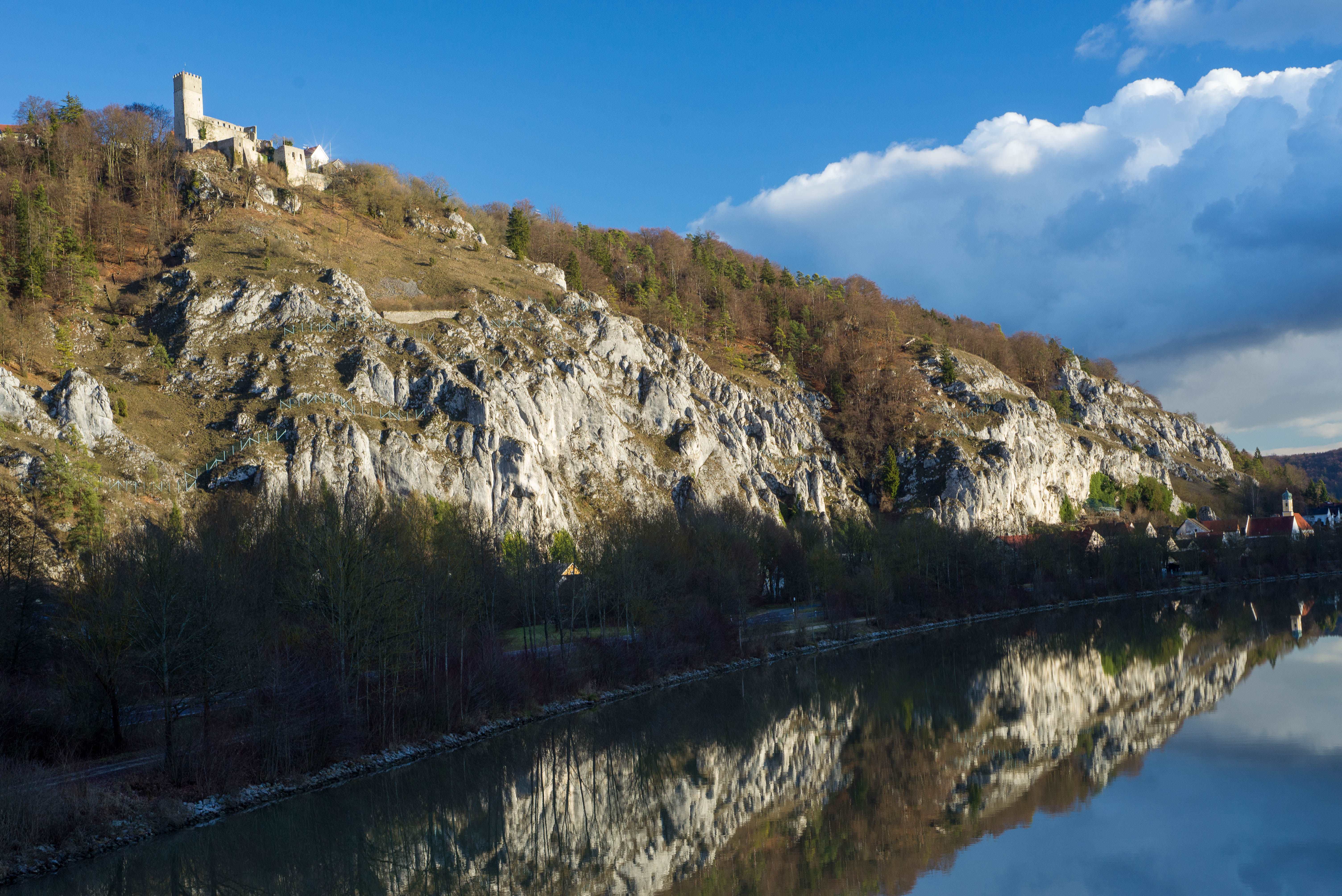 Nette Routen in großlöchrigem steilen Fels mit Blick auf die Burgruine Essing. Lohnen sich vor allem in Kombination mit der Chefetage. Vormittags tatsächlich sonnig.