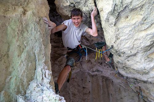 selten gemacht. bin jetzt erst auf den geschmack gekommen. ;-) schöne moves am dach und oben nett zu klettern, nur etwas unübersichtlich dann. nicht von den runouts abschrecken lassen. es löst sich immer ganz gut auf. stimmt! :) bisher fühlte ich mich mit meiner begeisterung für das teil ja irgendwie immer total allein... ich finde ja den einstieg besonders toll! aber das dach natürlich auch, wenngleich ich dafür keene wirklich elegante lösung parat hatte, außer die mit den fliegenden beenen... (hab mal gehört, das hätte irgendwas mit körperspannung zu tun ;-?) -