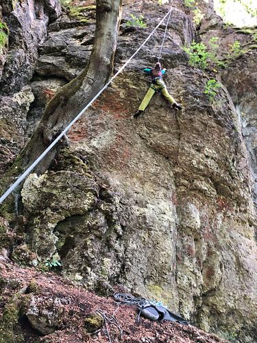 Sehr schöne Plattenkletterei, dranbleiben bis zum Umlenker Protection:very good