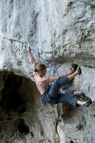 Ein Podest am Einstieg (so ca. 1m hoch) wäre nicht schlecht um an die Startgriffe richtig ran zukommen, ansonsten super Tour. Der Sprung im Einstieg gehört aber eigentlich zur Tour ( und Bewertung ) dazu.... Nomen et Omen Wie Sprung? Spring ihr da gleich in das große Loch? Eigentlich dacht ich wäre die Schlüsselstelle zwischen dem 3. und 4. Haken, für uns war aber der Einstieg (bis zum 2. Haken) das schwerste. Is zwar schon 10 Jahre her, aber ich kann mich noch erinnern, dass man von der Seite ( also da wo es hangmäßig etwas höher ist, evtl. auch mit Stein ) mehr oder weniger einarmig an den Henkel springt. Vorklippen nat. sehr ratsam... Vielen Dank, in der Zwischenzeit habe ich auch vom Ebe die Info bekommen, dass er vom Einstieg gleich in das große Loch springt. nach langjähriger klausfels-abstinenz haben wir am samstag festgestellt, dass es rechts ursprünglich ein kleines mäuerchen gab, von dem man aus gestartet ist. wie Ingo schon beschrieben hat. man ist zumindest mit rechts an eine leiste rangekommen von der aus man dynamisch ins grösse loch gehangelt bzw gesprungen ist. Hab mir schon so was gedacht. Inzwischen hab ich aber eine Lösung von unten raus gefunden. Die zwei rechten Fotos gehören ziemlich sicher zum Aufstiegskampf und nicht zum Abstoß -