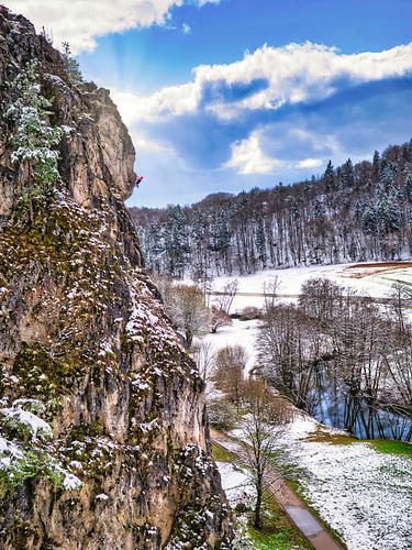 Hallo, ich bin die Tage das Dach des Rammelpfeilers von der linken Seite her im Toprope durchgestiegen. In Kombination mit den ersten 3 Haken der Millie Millou könnten man einen weiteren Haken im linken Teil des Dachs setzen, vll um einen Meter höher als der erste Haken des Rammelpfeilers (der ja etwas weiter rechts liegt). Der neue Haken würde sich gut in eine Linie mit dem oberen Haken (direkt nach dem Dach) und dem Umlenker der Rammelpfeiler-Route einfügen. Würde meiner Meinung nach eine neue spannende Variante und eine natürlichere Kletterlinie mit deutlich verbesserter Sicherheit ergeben. Was denkt ihr? (PS: Schwierigkeit würd ich als 7- einschätzen) Schönhofen liegt leider in einem ffh-Gebiet. Neurouten sind daher generell nicht erlaubt, bzw. sehr schwierig durchzuboxen. Auch wenn das bohren erlaubt wäre, muss man hier nicht unbedingt noch was dazubohren. Der rammelpfeiler ist eine Route mit Charakter…Original ist der 1.Haken direkt anzuklettern. So eine Linie sollte nicht „verbohrt“ werden. Die Labertalwand ist Zone 2, d. h. es besteht ein sog. "Veränderungsverbot". Neutouren sind da nicht möglich. Nur wenn man die Lage mit der Unteren Naturschutzbehörde vor Ort bespricht, kann da evtl. noch was dazugebohrt werden. Am besten Du wendest Dich, Phil, an den AK Schönhofen mit einer Anfrage. Der AK (Arbeitskreis) Schönhofen ist über die DAV-Sektion Regensburg erreichbar. Das mag zwar etwas umständlich sein, schützt das Gebiet aber vor wildem Bohren. -