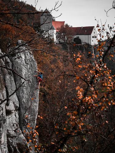 Vom letzten Zwischenhaken zum Umlenker…großes Fragezeichen!!!! Hab da nichts gefunden um diese 1,5 mtr zu überwinden. Hat die von Euch mal jemand gemacht und evtl ne Lösung parat? Irgendwann kamen mal so ganz ok'e Leisten mit denen man in der Delle aufstehen konnte glaub ich...Fand die tour aber auch ne nummer härter als das Warzenschwein ;) Sollt ich mir dann doch eher mal das Warzenschwein anschauen… Seid ihr das tatsächlich ab dem ersten eigenständigen Haken in der Platte geklettert? Ich habs ab dem Klapfen am zweiten eigenen Haken gemacht und fands immer noch sehr schwer für den Grad. Bezüglich dem letzten Haken: Da habe ich die Leiste mit links. Rechts den scharfen Seitgriff neben der Einfingerdulle. Dann den rechten Fuß neben die Hand und mit ganz viel Vertrauen aufstehen, bis man an den guten Riss kommt. Ich glaub ich habs auch so gemacht wie du Lando, oder zumindest mim Fuß bin ich lang im Riss stehn geblieben. Komplett über die Haken würde sich auch erzwungen anfühlen und dann kanns mir selbst im Altmühltal niemand mehr als 8- verkaufen -