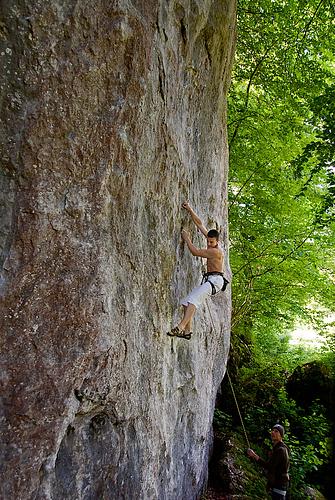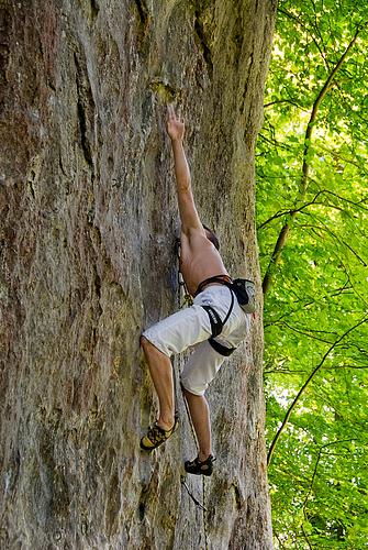 Erste Route am Fels Wurde damals als 7/7+ ohne den derzeitigen ersten Haken erstbegangen. Wäre in der Fränkischen Locker glatt 8... Protection:classic