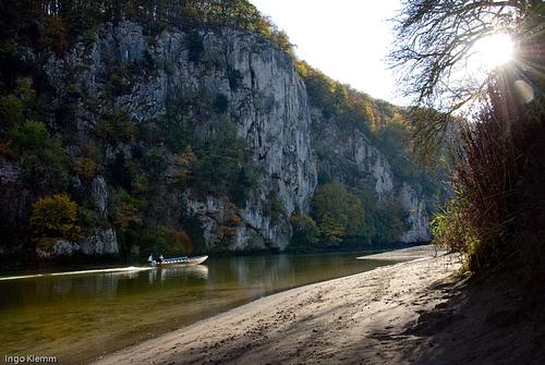 Nachden der Zustieg zum ersten Haken hochwassererrosionsbedingt immer abenteuerlicher wurde, gibt jetzt einen neuen (tieferen) ersten Haken. Mittlerweile ist es ratsam, in die Air Liquide, den Regensburger-Riss usw. über die 1. SL der "Zwischen Licht und Schatten" einzusteigen, da die alte Einstiegseillänge des Regensburger Risses wirklich nicht mehr empfohlen werden kann (Bruch und Rosthaken). Nach dem 4 Bohrhaken von "Licht und Schatten" kann nun auch nach links geklettert werden und man darf sich auf dem weiteren Weg zum Standplatz der Air Liquide über 2 weitere neue Bohrhaken freuen. Um diese einzuhängen, muß man sich zwar etwas nach rechts strecken, aber dafür stecken die Teile wenigstens in soliden Fels... Protection:classic