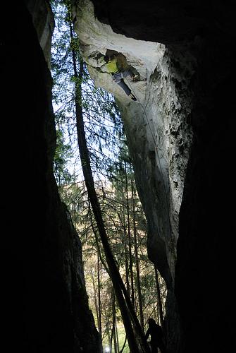 Die Gruft hat jetzt eine Warm-up Route. Auf der rechten Seite der Schlucht. Gear: 5 Bühler + 1 UmlenkerProtection:very good