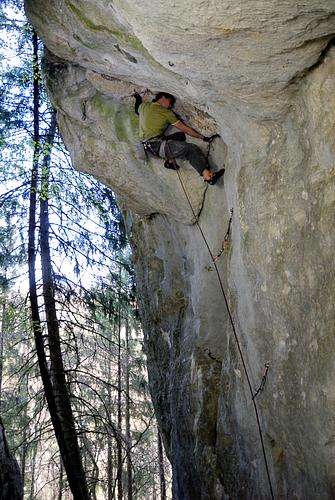 zwischen totentanz und dead man chalking gerade hoch unter überhang, dort nach links und zusammen mit totentanz zum umlenker, 6h + uh Protection:classic