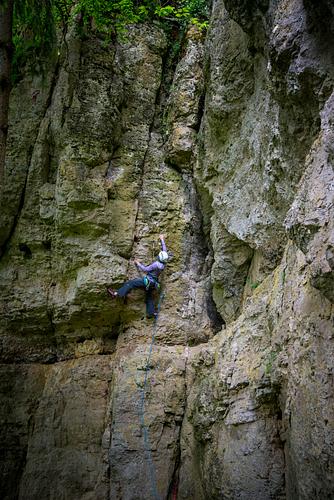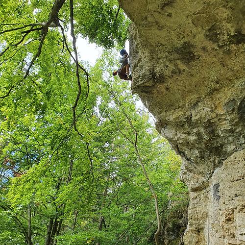 Die Optik der Tour schüchtert vielleicht ein bisschen ein, die Kletterei ist allerdings halb so schlimm....gewusst wie ;-) Die letzen Meter sind prima und sogar fest, dafür gibts eine Herzchen... Ob 3 kräftige Züge für den Grad ausreichen ist allerdings noch in der Diskussion... Hat sich bei meiner Wiederholung damals auch wie "glatt Acht" angefühlt. Mit dem "Müslimann" am Prunner Turm (auch glatt 8) darf man es aber nicht vergleichen... der ist aber auch kein wirklicher Bewertungsmaßstab. Die schweren Züge durch das Dach sind sehr cool und der Name passt perfekt ;-) Müsliman glatt 8? Was muß mein Auge hier schreckgeweitet lesen? Der Müsliman ist immer noch 8-! Vergleicht man beide Touren, vergleicht man Äpfel mit Birnen - New Wave (Boulderwelt made me do it) gegen Old School (Müsliman). Acht paßt m. E. aber für "Boulderwelt...". dann muss ich aber im gegenzug den 8er am kamerunfels auf 9- erhöhen... Laut Juraclimbs ist der Müslimann 8.Dann müsste man das dringend mal ändern... Endlich wieder Bewertungsdiskussionen...hatte ich schon vermisst :-) Ohne jetzt hier nochmal die Bewertungsdiskussion anregen zu wollen würde es mich doch interessieren ob das Teil jemand anders hier auch schon mal konsequent als Riss geklettert ist oder vllt sogar nen Vergleich der beiden Methoden hat. Auf jeden Fall ne tolle Linie mit nur etwas zu vielen Haken ;) Du darfst gerne Haken auslassen;-) Zum einrichten der Tour warens ganz angenehm :-) Nur Riss…sicher schwerer als 8 -
