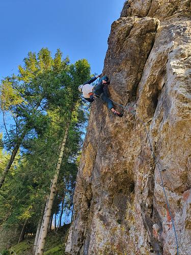 Ist das schon geklettert? Projektschnürl ist nämlich keins mehr drin... Die Tour heißt „Monokönig“…soweit ich mitgekriegt hab. Irgendwas im 8. Grad -